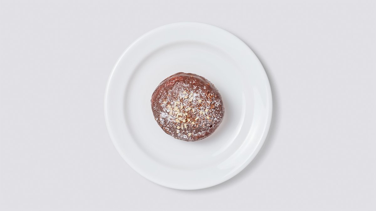 ふわふわのドーナツ生地をチョコレートでコーティングし、香ばしいスライスアーモンドをトッピングしました。食感と風味が楽しい一品です。 / Fluffy donut coated with chocolate and topped with fragrant sliced almonds. An item enjoyable for both its texture and flavor.