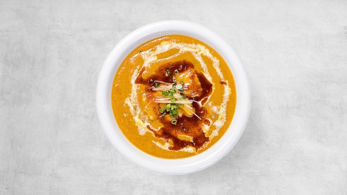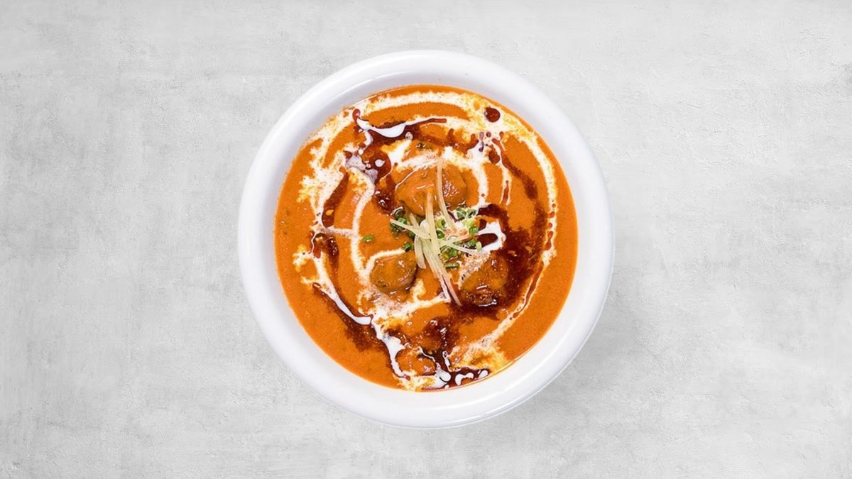 プリッとした海老の旨みに、バターのコクとトマトの甘みを合わせたまろやかマサラソースを使用。とろりと柔らかく煮込んだナスが海老の風味と溶け合い、濃厚ながら優しい味わいに仕上げています。食材それぞれの旨みが引き立つ、満足感たっぷりの一皿です。