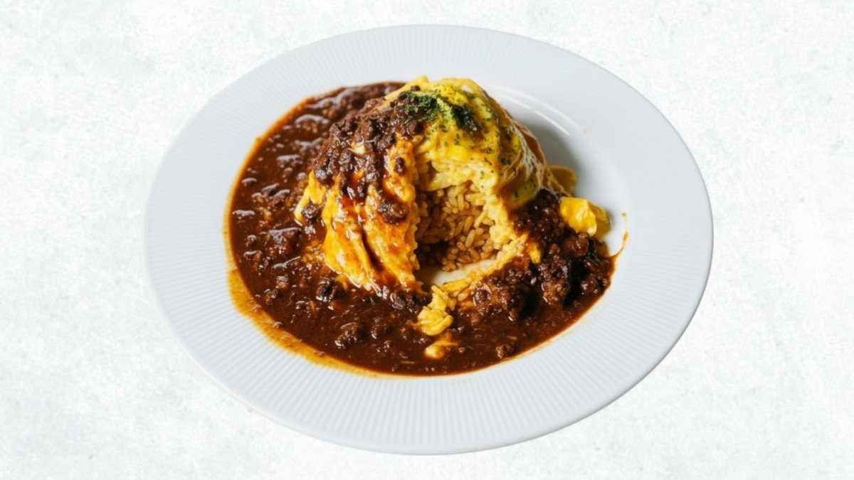 蝦夷鹿欧風カリーをベースにふわとろたまごのご飯と合わせました