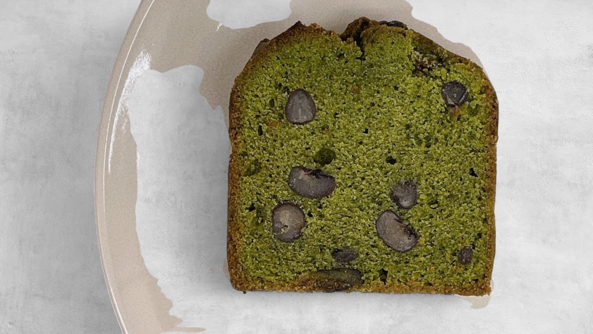 【カルピスバター × 北海道産米粉】で作るこだわりのパウンドケーキ。抹茶がしっかり味わえる米粉生地に北海道産あずきを練り込み、ふんわり焼き上げました