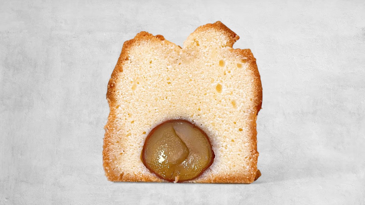 【カルピスバター × 北海道産米粉】で作るパウンドケーキ。 栗をゴロッと入れて、ラム酒のシロップを染み込ませました。