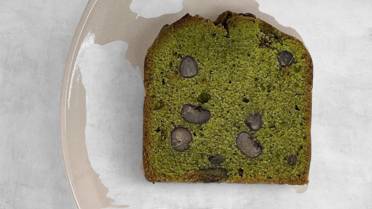 【カルピスバター × 北海道産米粉】で作るこだわりのパウンドケーキ。抹茶がしっかり味わえる米粉生地に北海道産あずきを練り込み、ふんわり焼き上げました