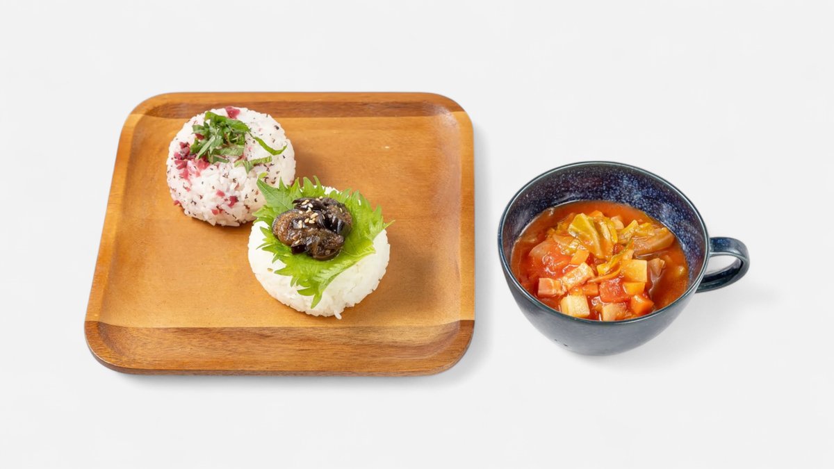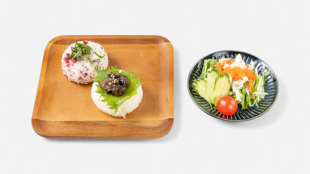 福むすびの美味しさをセットメニューご提供「冷めても美味しい秘密は、この粘り」:おぼろづき特有の強い粘りと透明感が、冷めても美味しさをキープ。いつでも最高の食感をお届けします。北海道産おぼろづき心もお腹も大満足のセットメニューです。