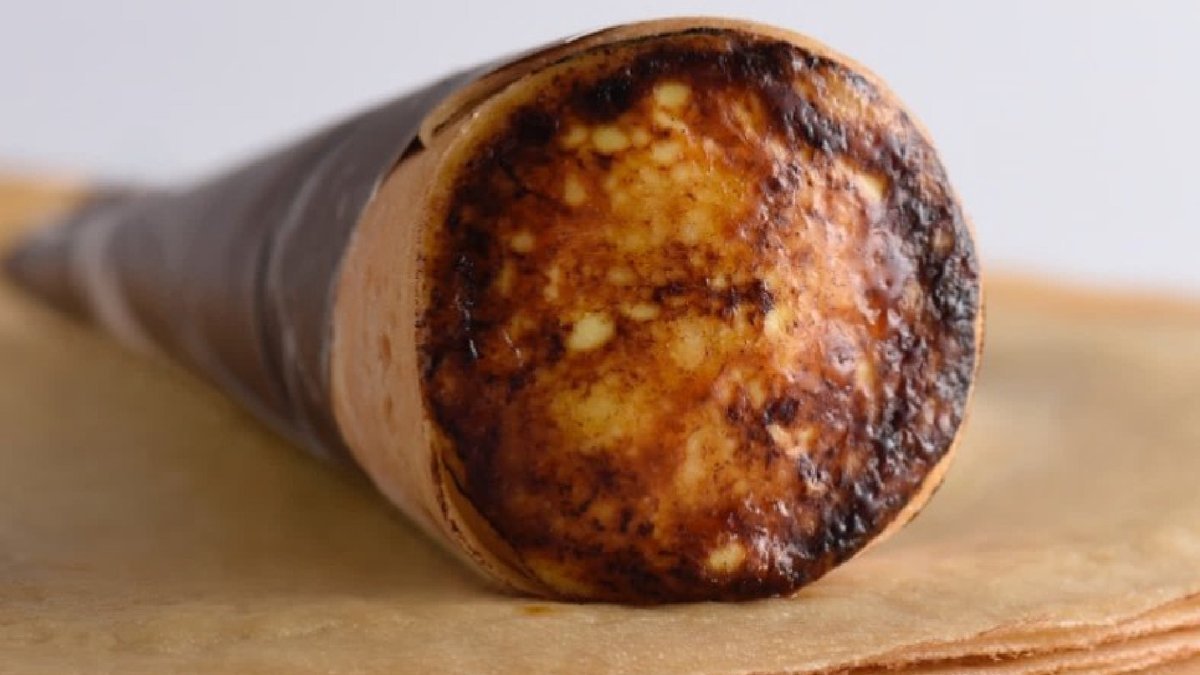 もちもちのプレーン生地と歯ごたえのあるココア生地が重なったボリューム満点のクレープです!