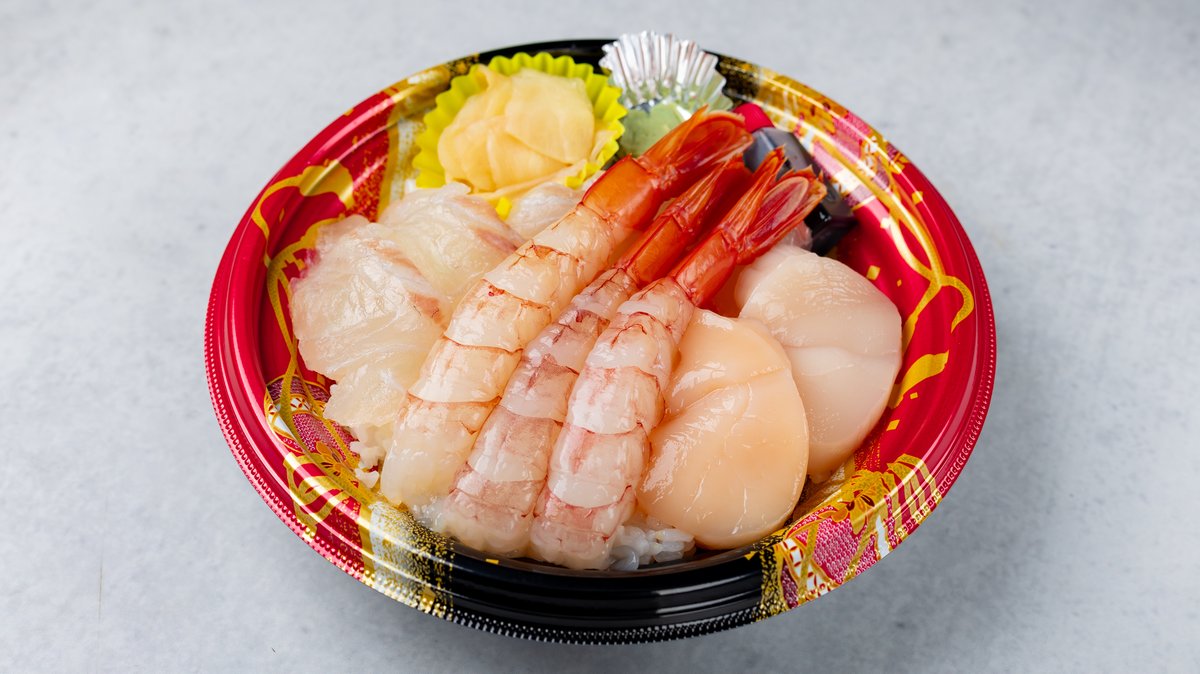 3種類の新鮮な魚介を楽しめるシンプルで美味しい海鮮丼です。