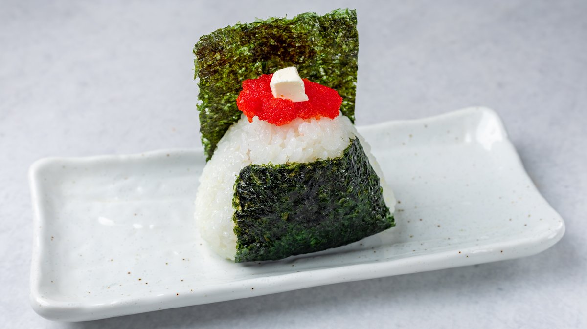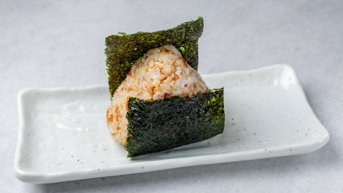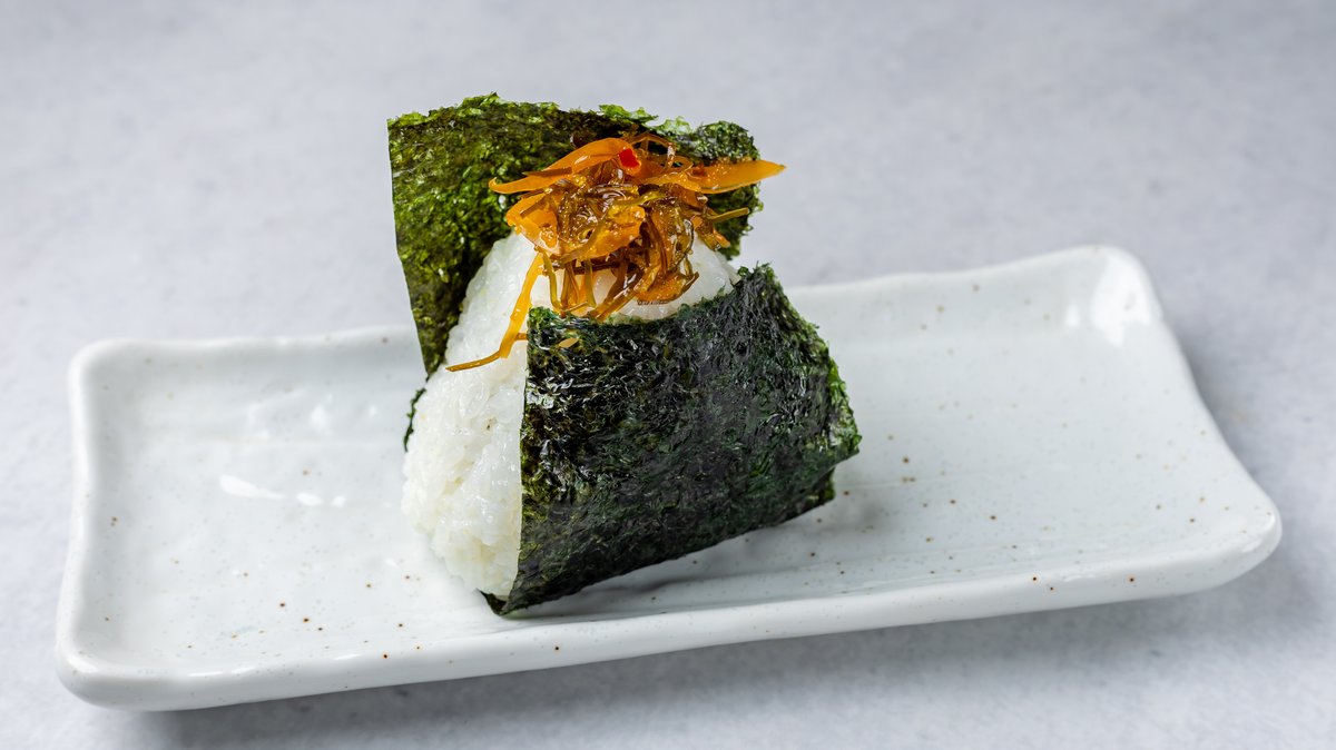 松前漬けの甘辛さがアクセントの、和風おにぎりです。
