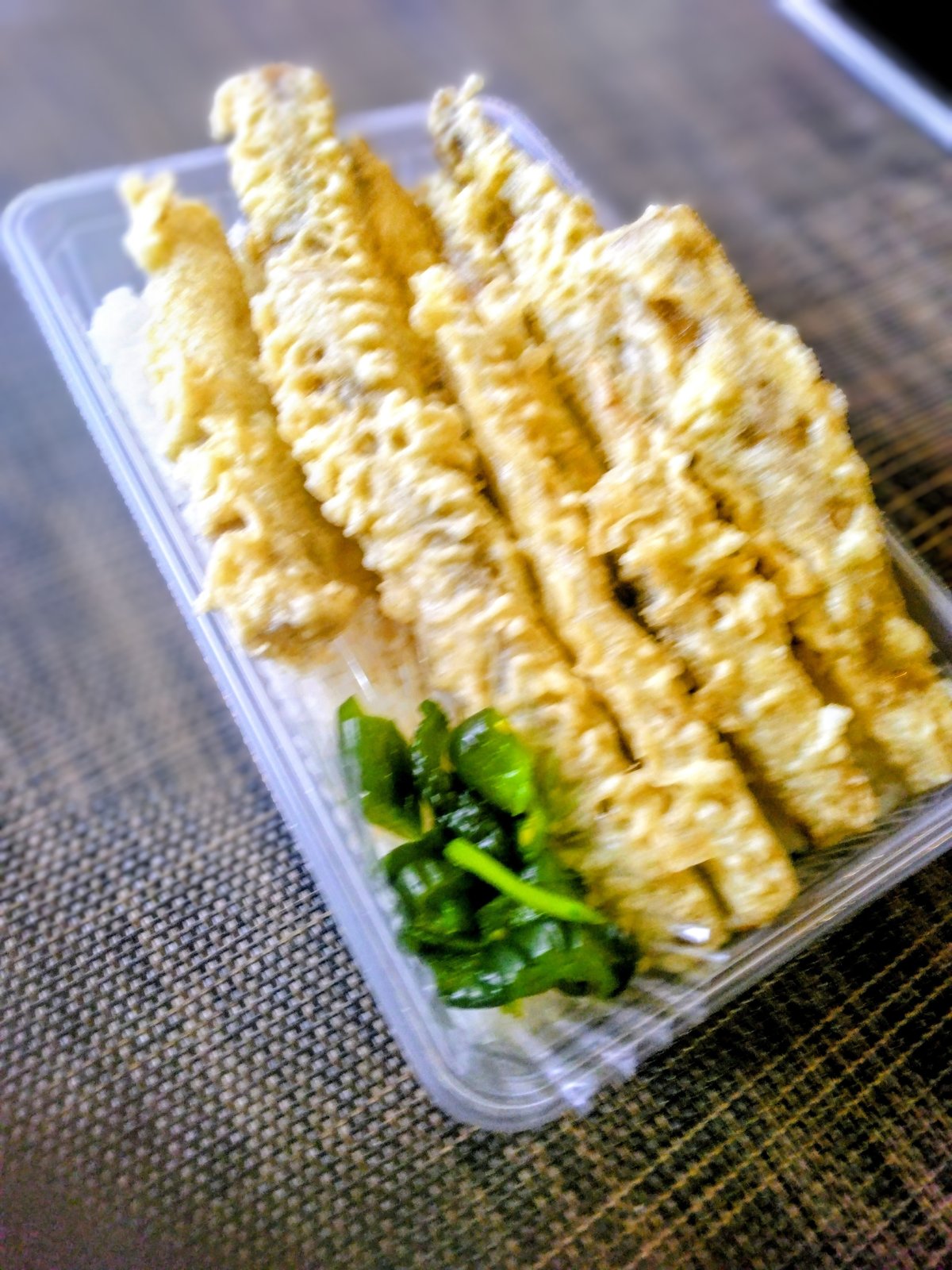 ご飯の上にごぼう天ぷらをのせて