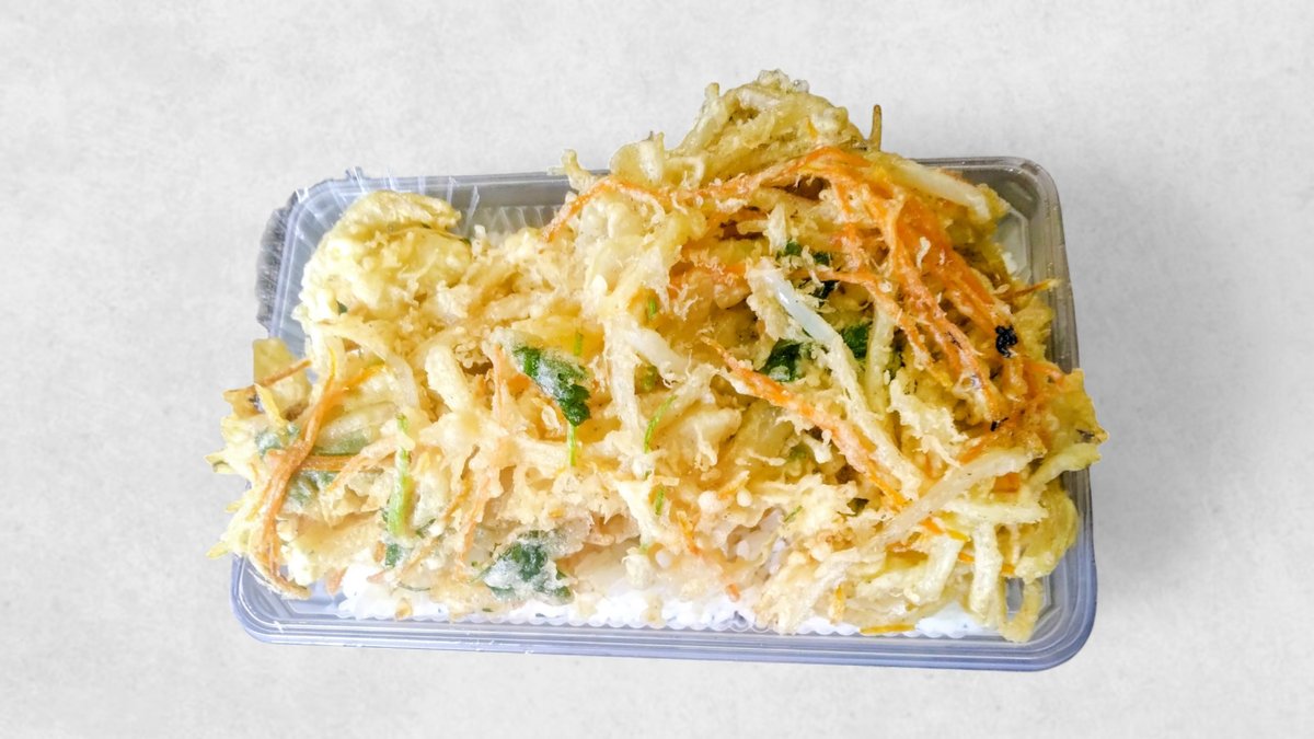 ご飯の上にかき揚げをのせて
