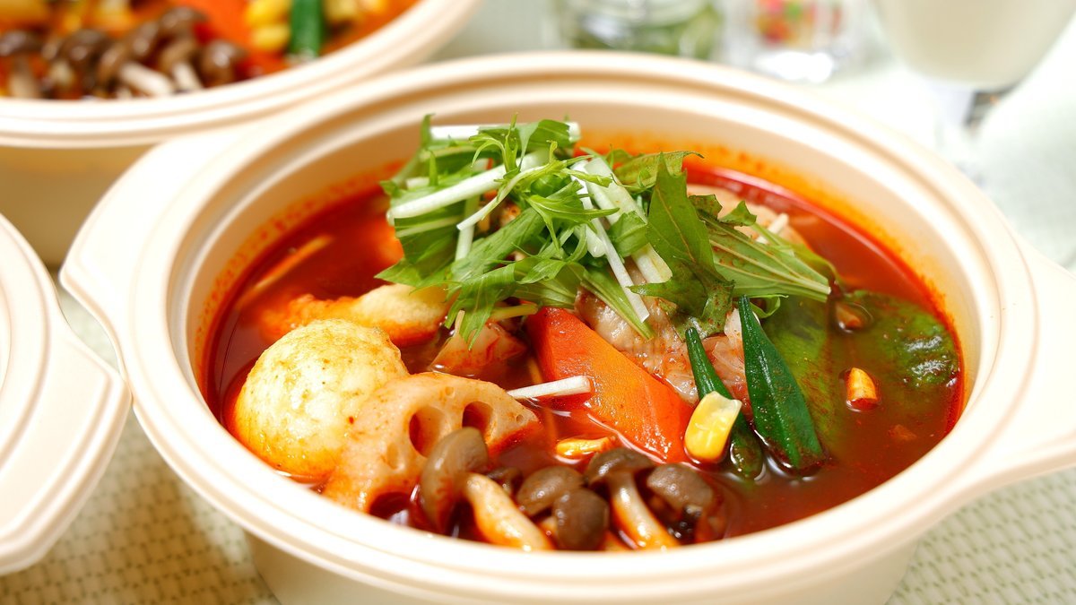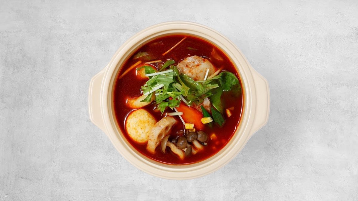 酸味と辛味が混ざり合ったスパイシーなタイのスープ。 彩り豊かな野菜がたっぷり入った、軽やかでヘルシーな一皿。野菜の甘みとスープの刺激が好相性。 ※写真はバジルソーセージカレーです。
