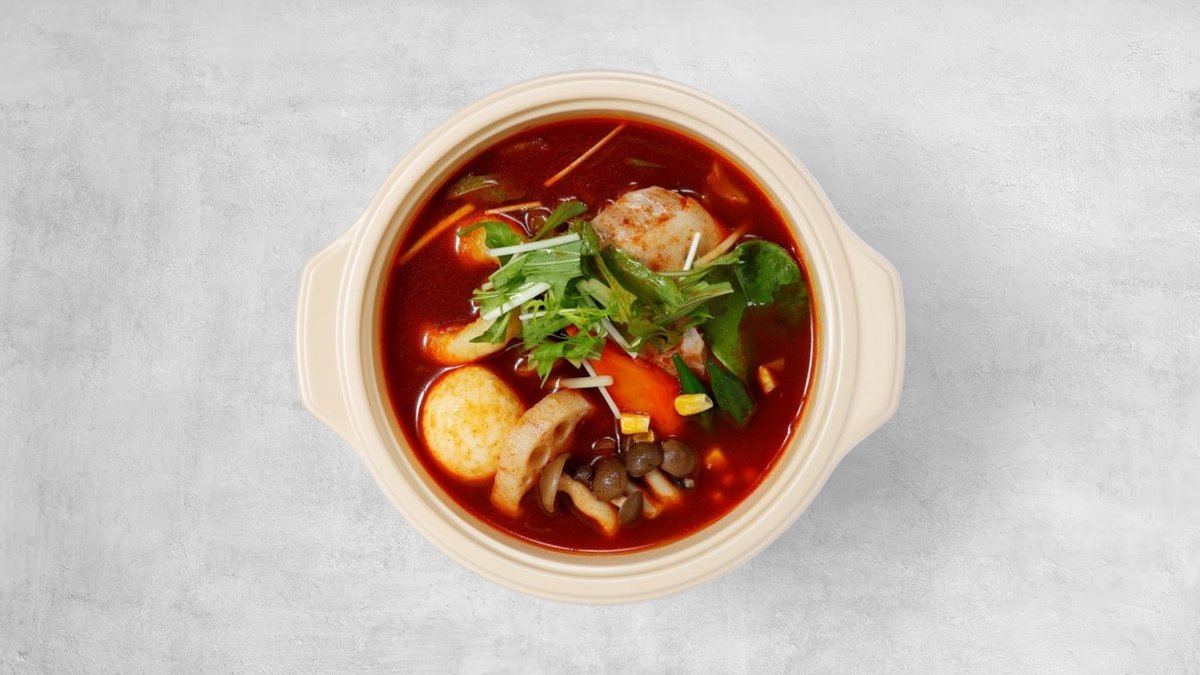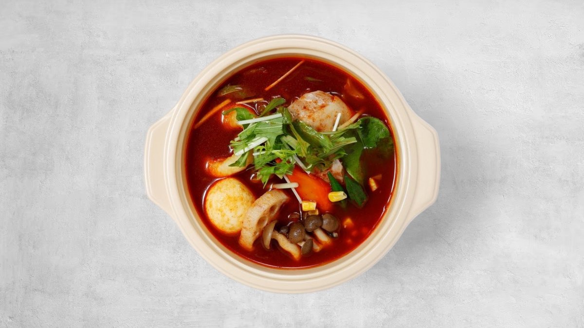 酸味と辛味が混ざり合ったスパイシーなタイのスープ。 ソーセージを贅沢に2本使った食べ応え抜群の一皿。肉の旨みとスパイシーなスープの相性が最高です。 (※写真のスープはクラシックです。)
