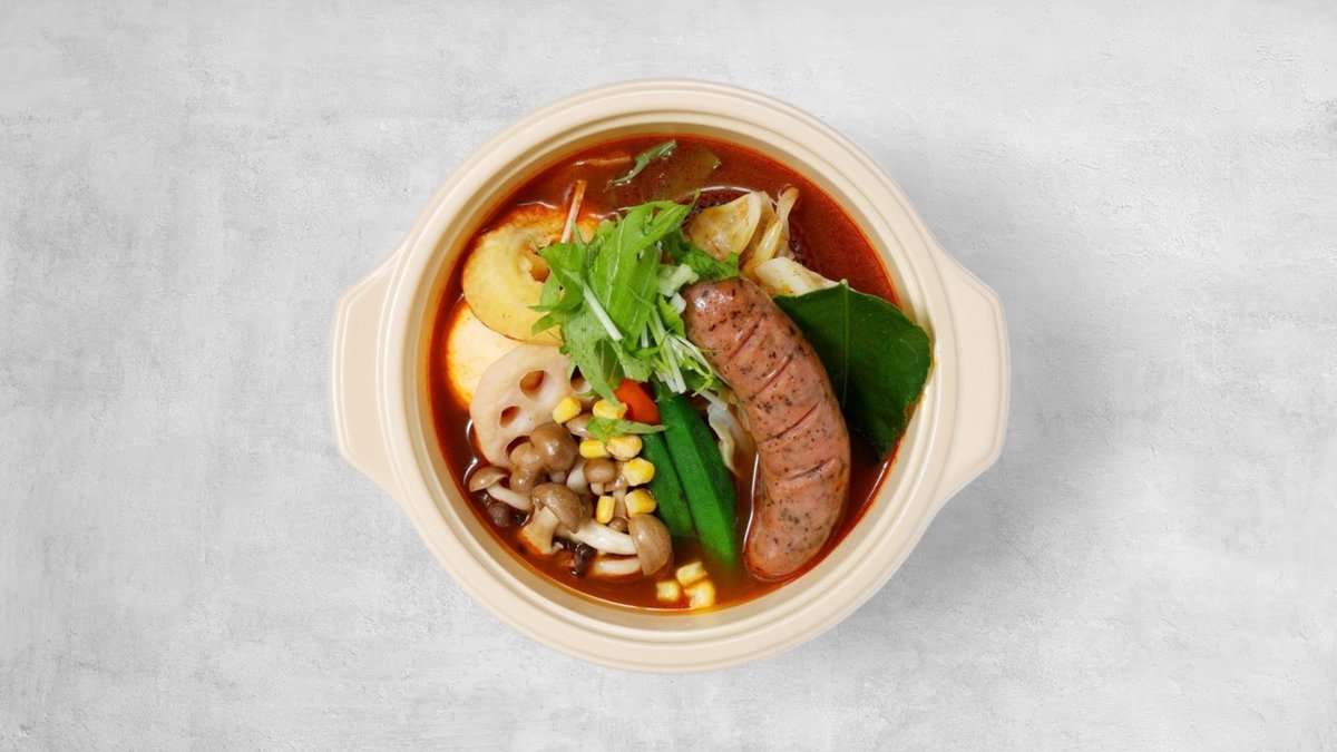 ココナッツミルクが入ったあっさりクリーミー系のスープに仕上げました。 ソーセージを贅沢に2本使用し、食べ応え満点。スープのまろやかさと肉汁が絶妙に調和します。 ※写真はクラシックスープです。