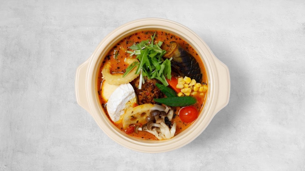 濃厚カマンベールとジューシーなハンバーグを贅沢に使用。 あっさりスープとチーズのコクが絶妙に重なり、満足度の高い一杯に。 ※写真はベジタブルカレーです。