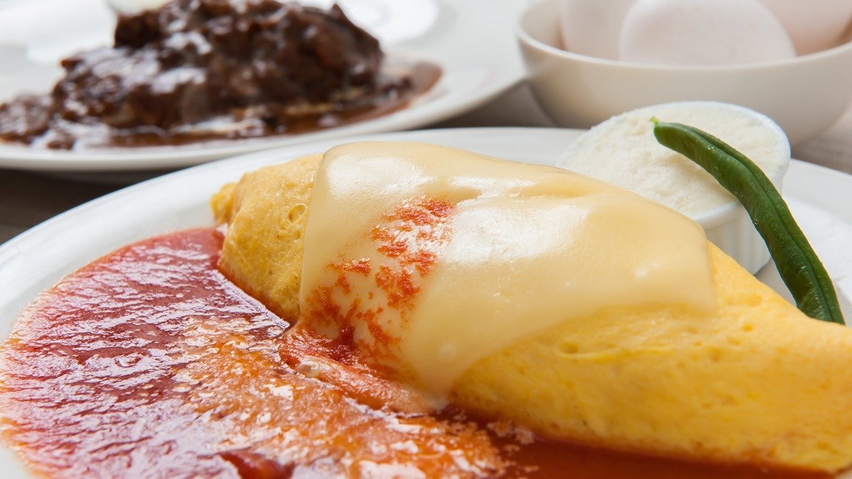 オムライスとハンバーグ、両方食べたいあなたにぴったり! 無料でライスを大盛りに変更できます。 チーズトッピングもオススメですよ!