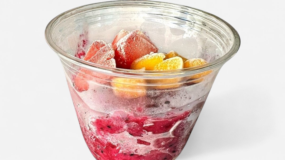スーパーフード、ドラゴンフルーツの冷たいSWEET。アサイーと並ぶヘルシーな栄養価と美味しさ。ピンクが鮮やか。