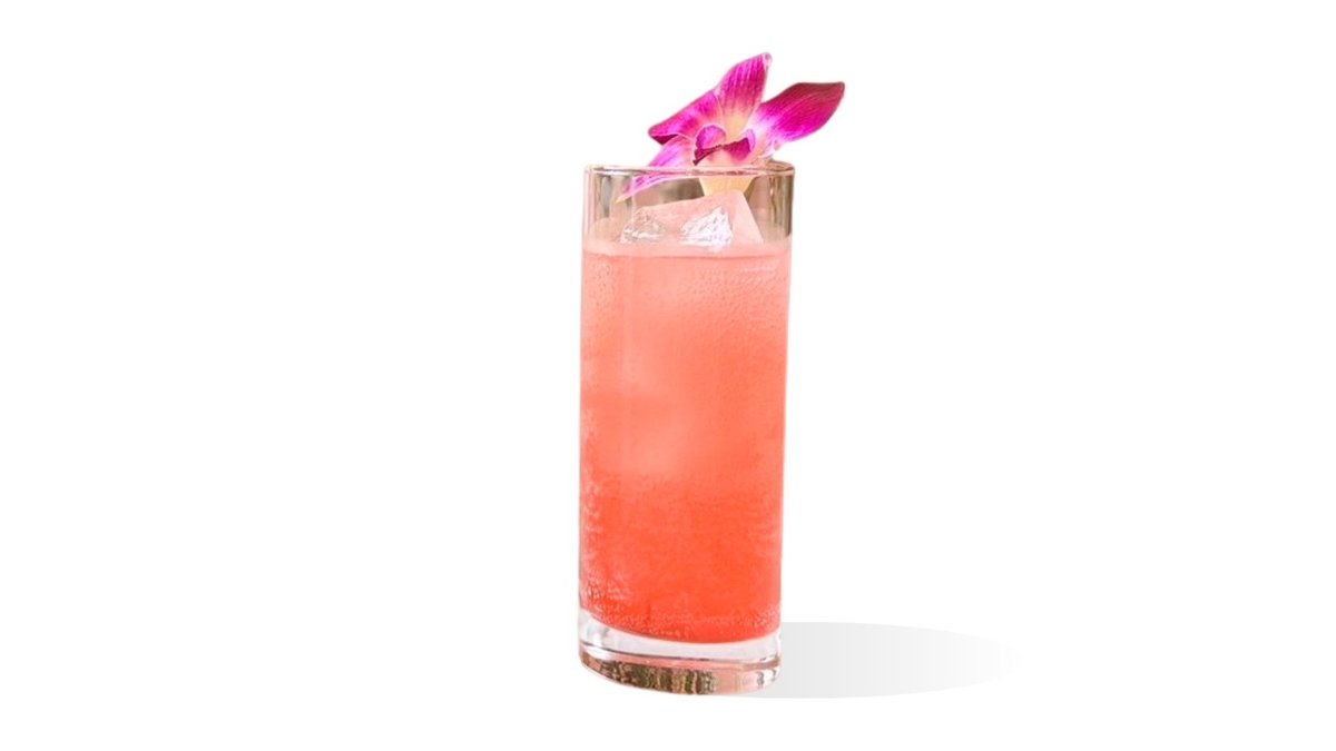 ピンクグレープフルーツリキュールと炭酸、キレイなピンク色のドリンクです。
