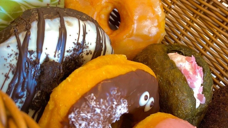 北海道産小豆のつぶあんと抹茶クリームをサンドしたドーナツ。 きなこをまぶした和のドーナツ。