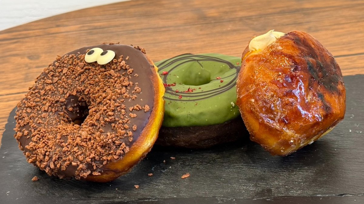 抹茶チョコレートを焼いた香ばしいドーナツ。