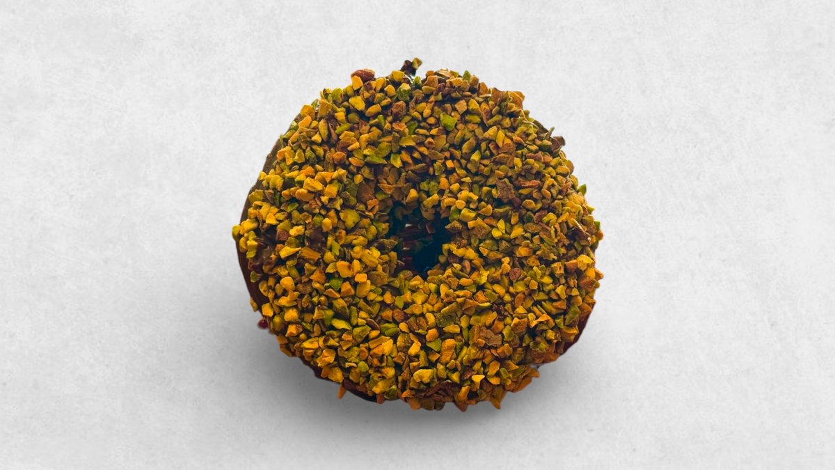 ミルクチョコレートにローストピスタチオたっぷりの 香ばしいドーナツ。