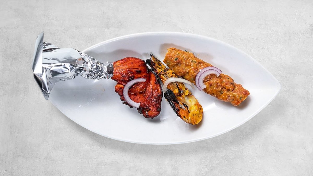 香ばしく焼き上げたタンドーリチキンとタンドーリプロン(えび)、スパイス香るシシカバブに、さっぱりとしたサラダを添えたバランスの良い盛り合わせです。 内容:タンドーリチキン・タンドーリプロン(えび)・シシカバブ・サラダ