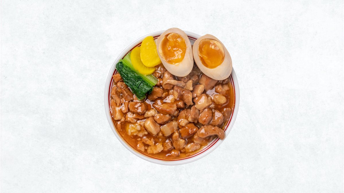 オリジナルブレンドのスパイスと甘めのタレで煮込んだ豚肉はご飯がすすむ一品です。
