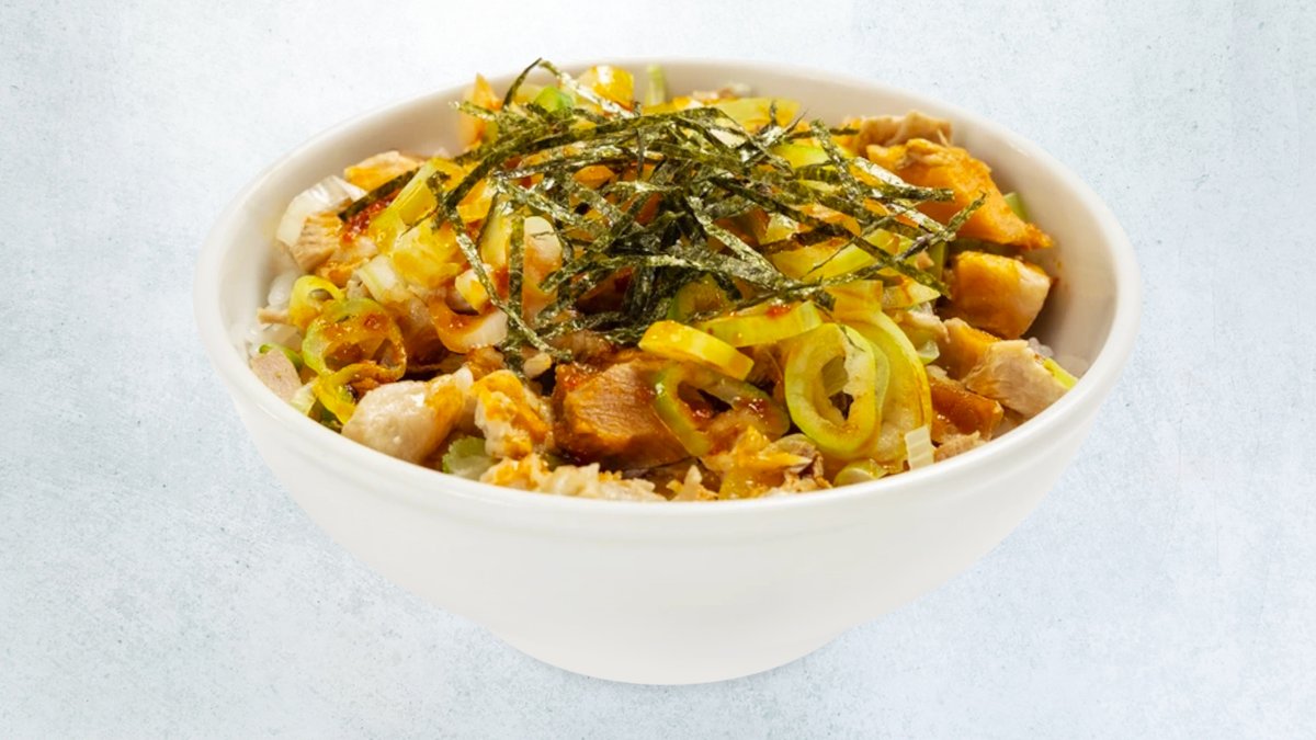 チャーシューにたっぷりのネギを添えた風味豊かな丼です。