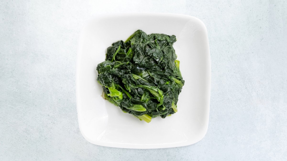 茹でたほうれん草を添えた、彩りと栄養をプラスするトッピングです。