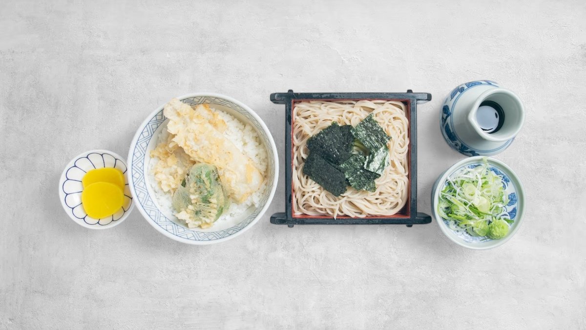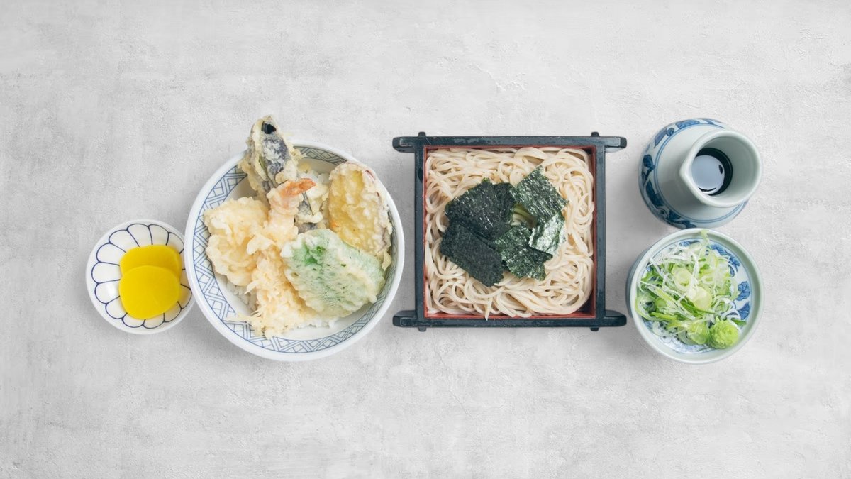揚げたてサクサク天ぷらと、コシのあるそばの最高コンビ。軽やかさの中に満足感もしっかりある、自慢のセットです。
