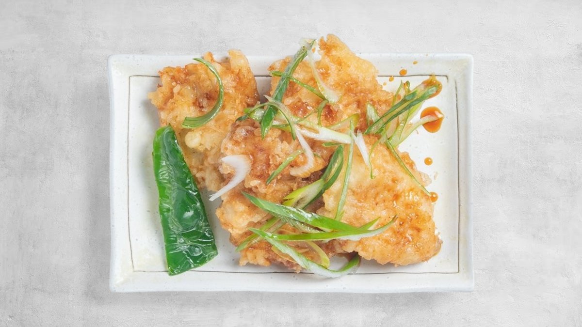 香り豊かなねぎをたっぷりのせたさっぱり仕立ての鶏天。ジューシーさの中に爽やかな風味が広がります。