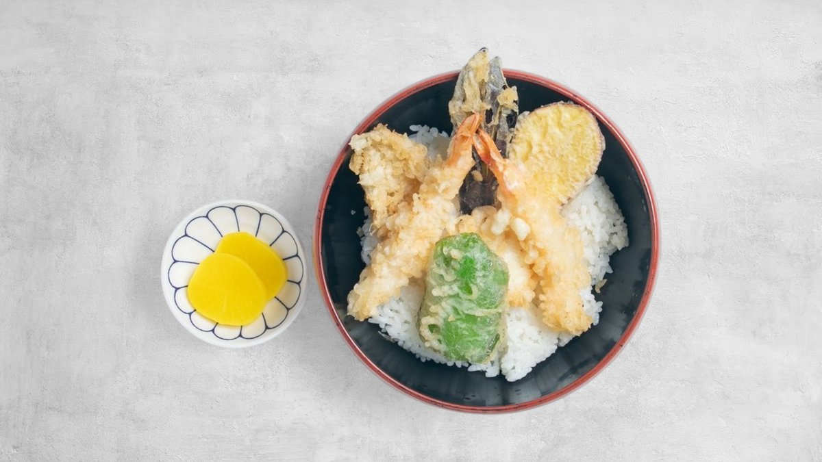 サクサク衣の天ぷらをたっぷりのせた人気の天丼!海老や野菜の旨みがぎゅっと詰まった、満足感たっぷりの一品です。ボリュームも味も大満足のおすすめセット!