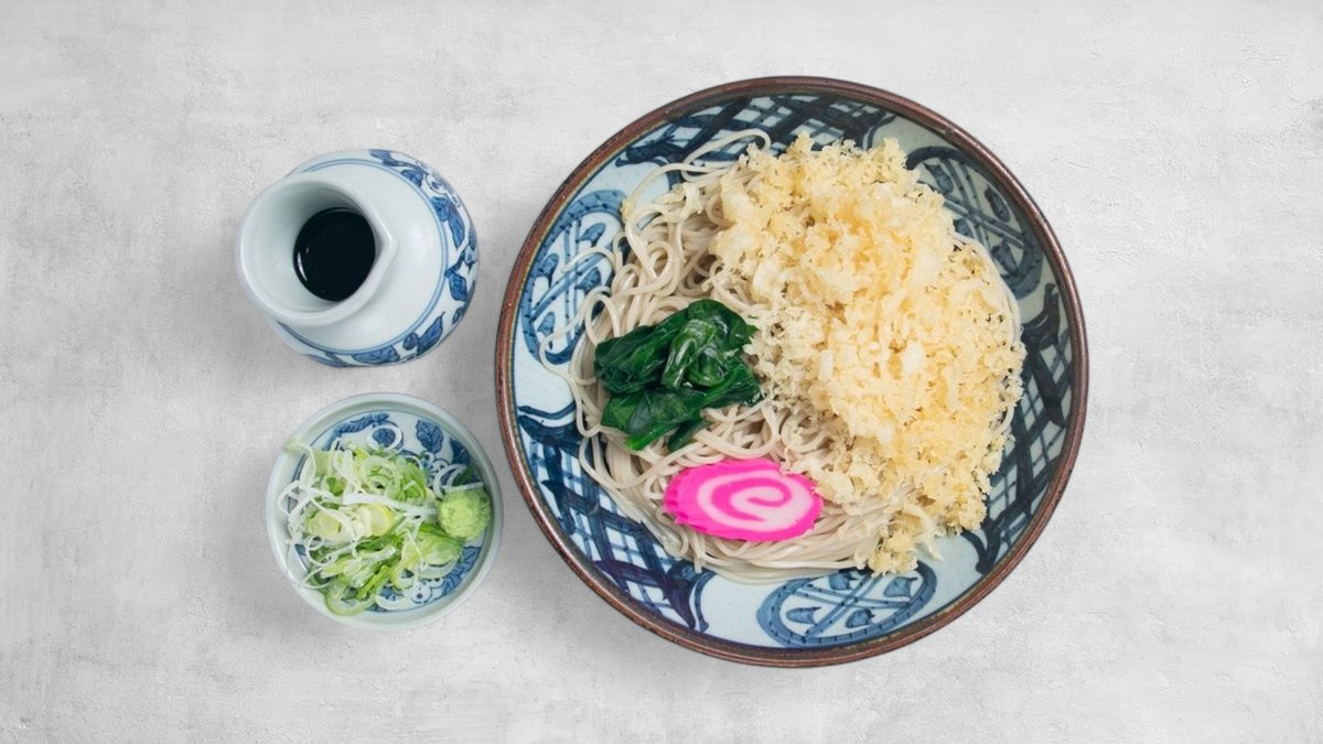 カリッと天かすの香ばしさと、冷たいそばのキリッと感が見事にマッチ。さっぱりしつつ食べ応えもある人気メニューです。
