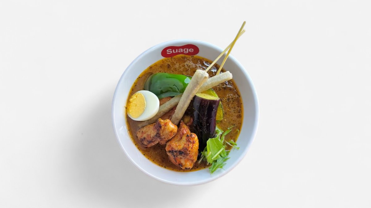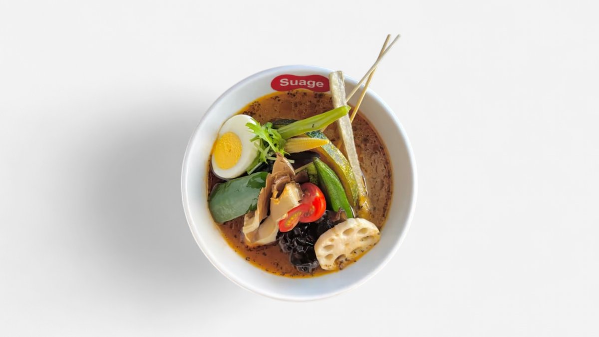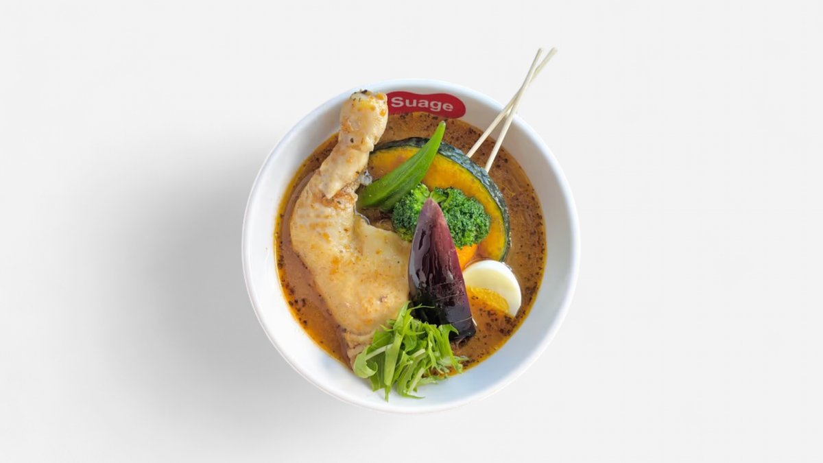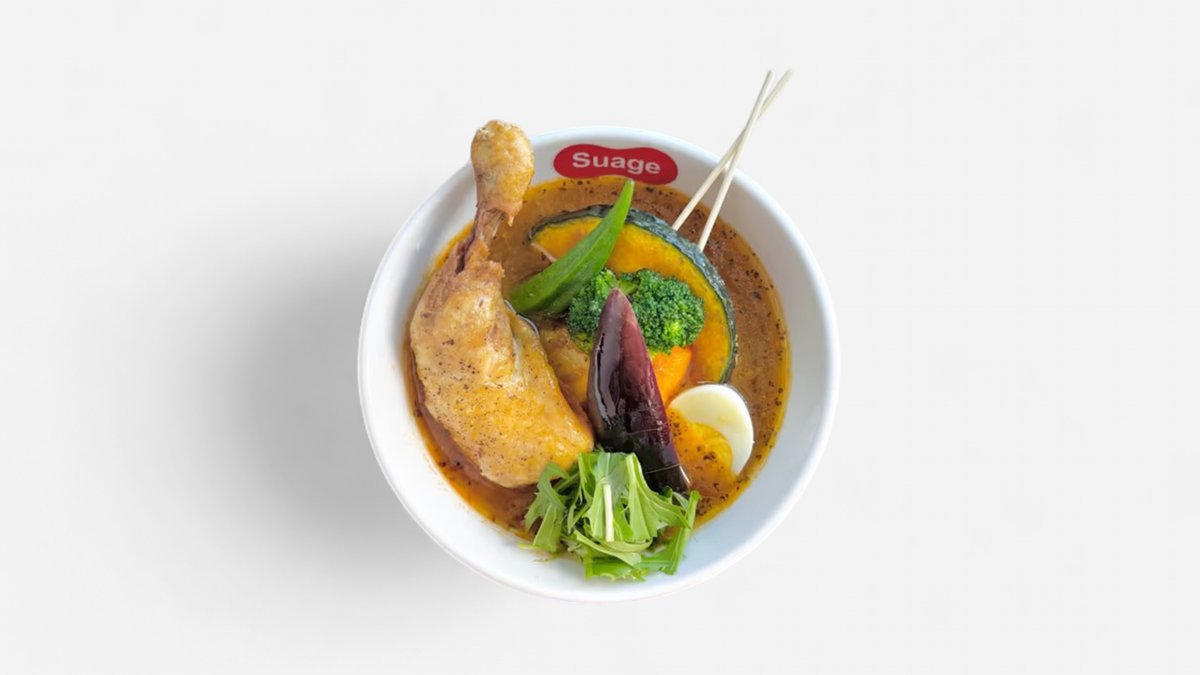 オリジナルブレンドのスパイスやゴロゴロとした大きな具材が使われたSuageのスープカレーです。 ※原則として、スープと具材は同じ容器でご提供します。