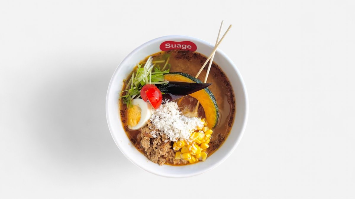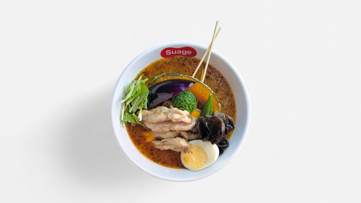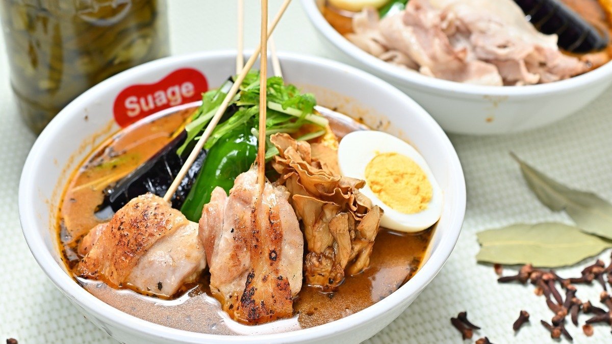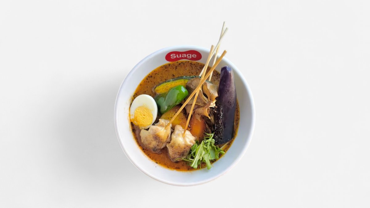 オリジナルブレンドのスパイスやゴロゴロとした大きな具材が使われたSuageのスープカレーです。 ※原則として、スープと具材は同じ容器でご提供します。