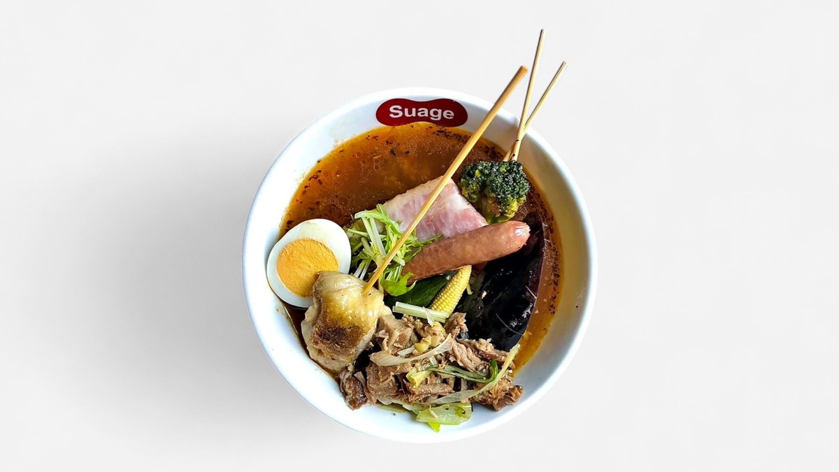 オリジナルブレンドのスパイスやゴロゴロとした大きな具材が使われたSuageのスープカレーです。 ※原則として、スープと具材は同じ容器でご提供します。