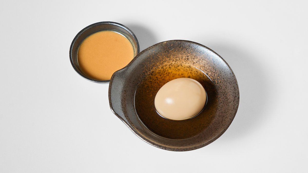 中まで味が染み込んだ豚汁と相性のいい煮卵です。
