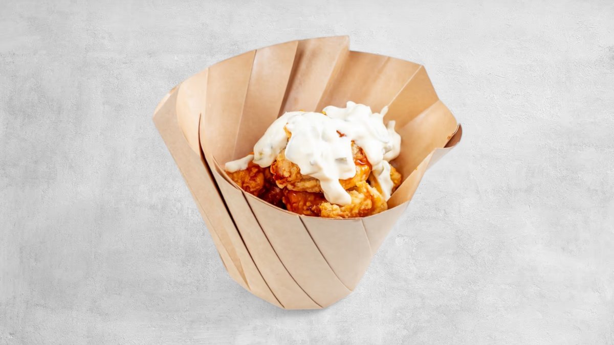 複数のチーズと野菜、スパイスをブレンドした特製パウダーをまぶしたフライドチキンです。甘じょっぱい濃厚な味わいが特徴です。