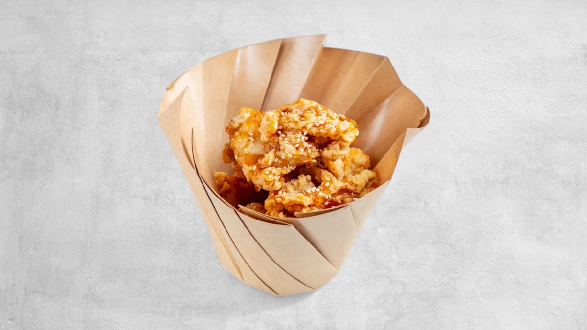 ハチミツの優しい甘さと醤油の香ばしさを合わせたソースを絡めたフライドチキンです。甘さと塩気の組み合わせが後を引く美味しさです。