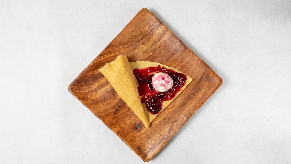 練乳の優しい甘さとベリーの酸味、フルグラの食感が楽しいクレープです。