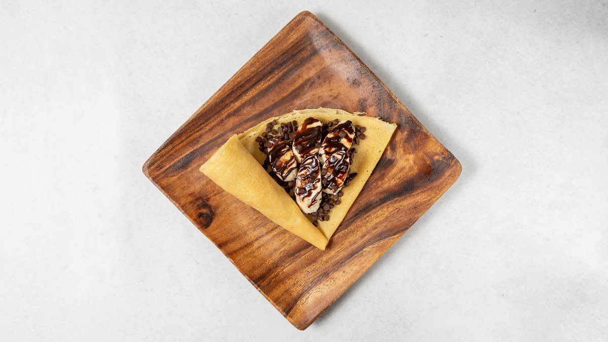 温かいチョコレートとバナナの組み合わせが、心も体も温まる人気のクレープです。
