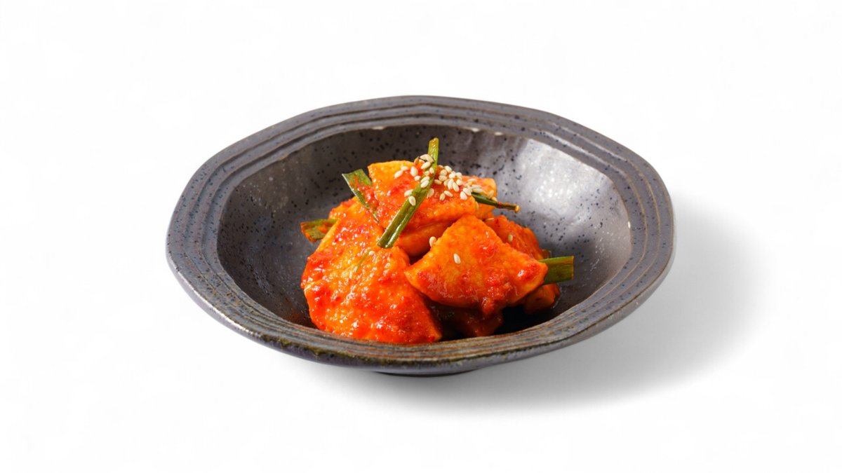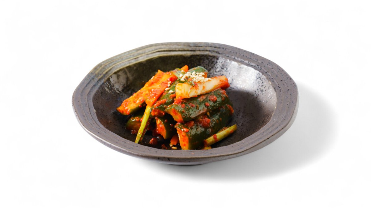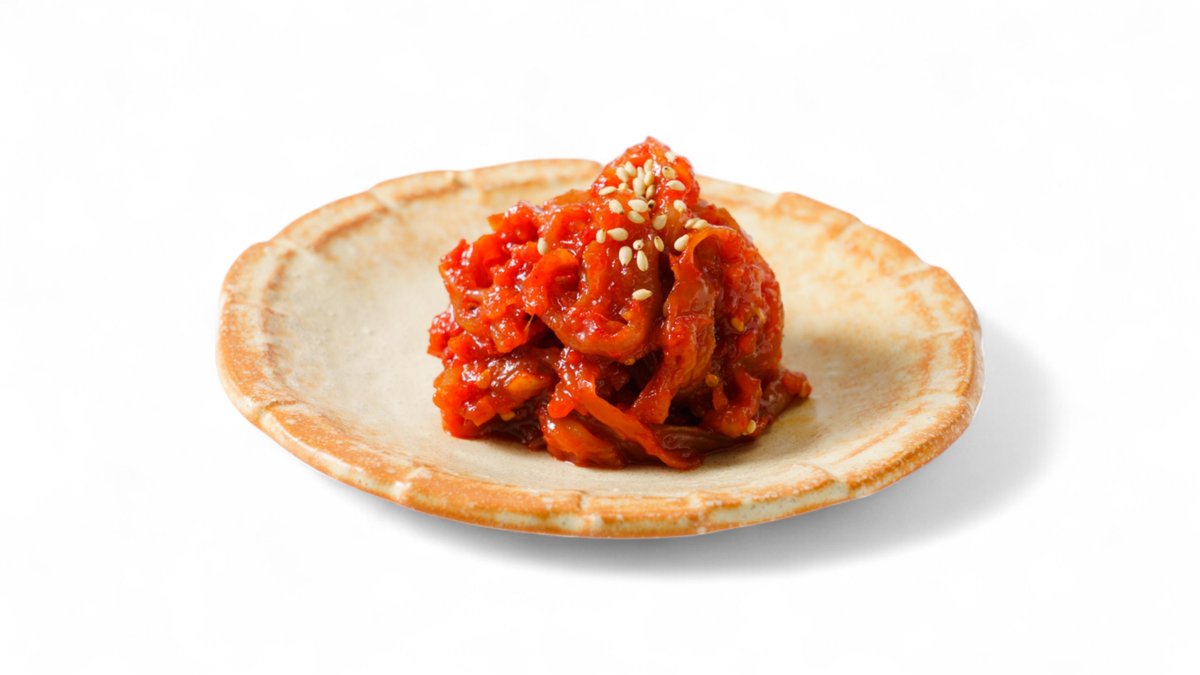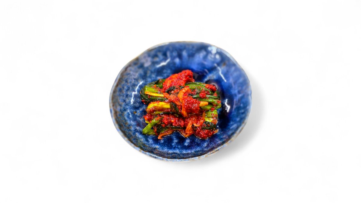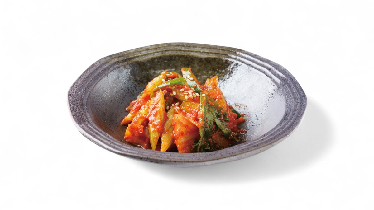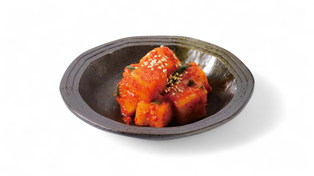 厳選された国産食材、天日干し唐辛子を100%使用したこだわりの手作りキムチをご提供しています。塩漬け、水抜き、発酵まで全ての工程を手作業で6日間かけ、素材の旨味を最大限に引き出した深い味わいです。