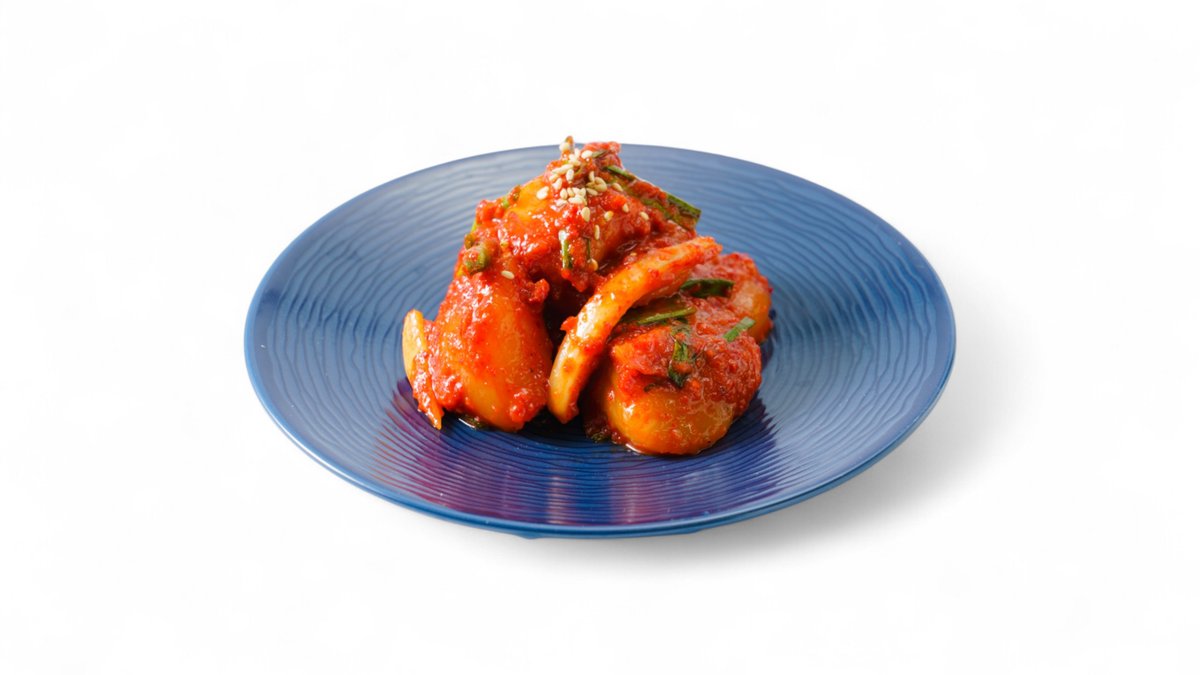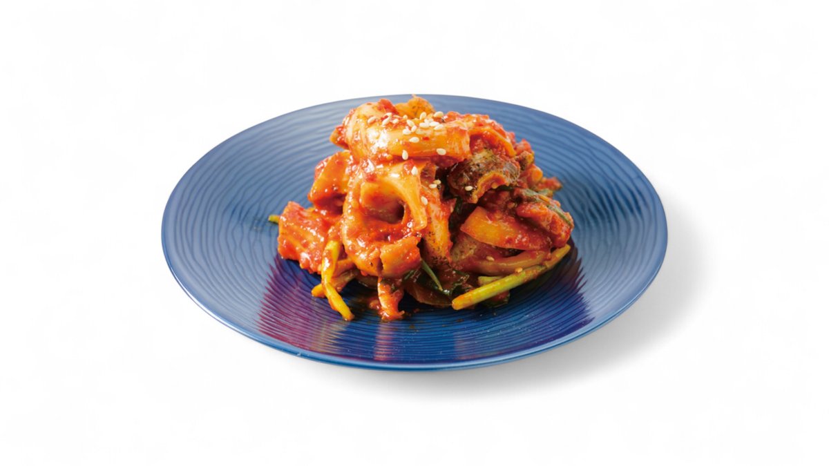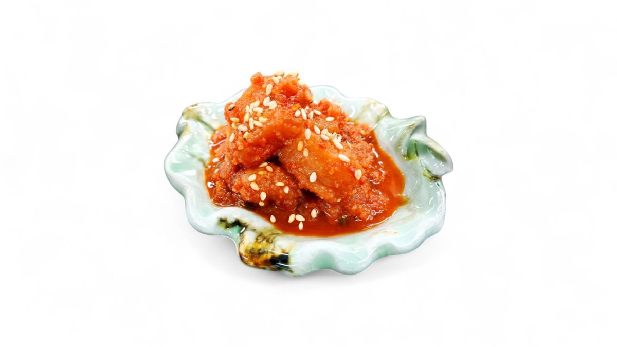 厳選された国産食材、天日干し唐辛子を100%使用したこだわりの手作りキムチをご提供しています。塩漬け、水抜き、発酵まで全ての工程を手作業で6日間かけ、素材の旨味を最大限に引き出した深い味わいです。