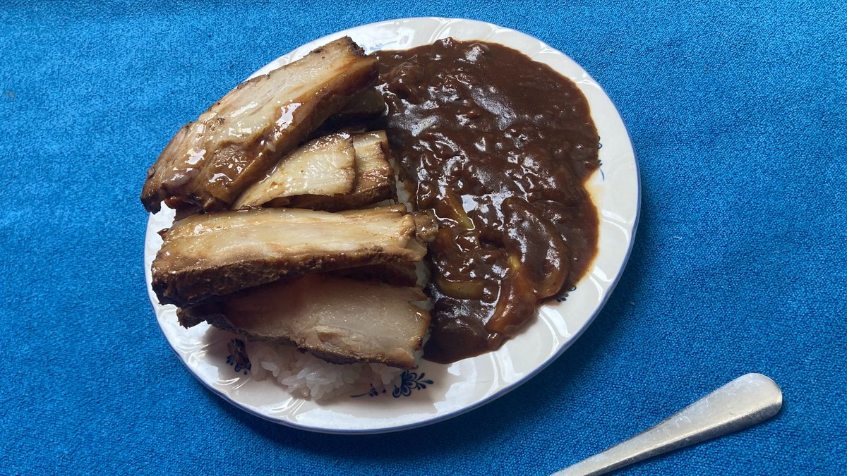 牛バラカルビと豚角カレーライスです。 まさにガチ肉カレーライスです。