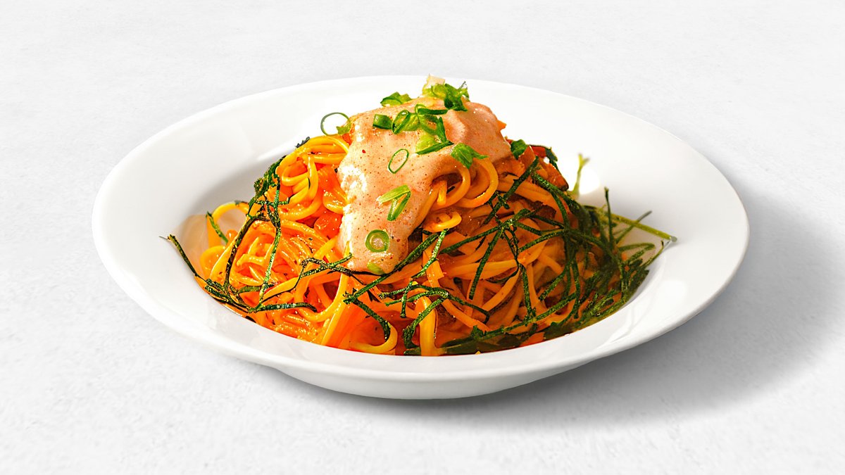 トマトソースパスタをベースにアレンジ明太マヨを加えたオリジナルパスタです☆