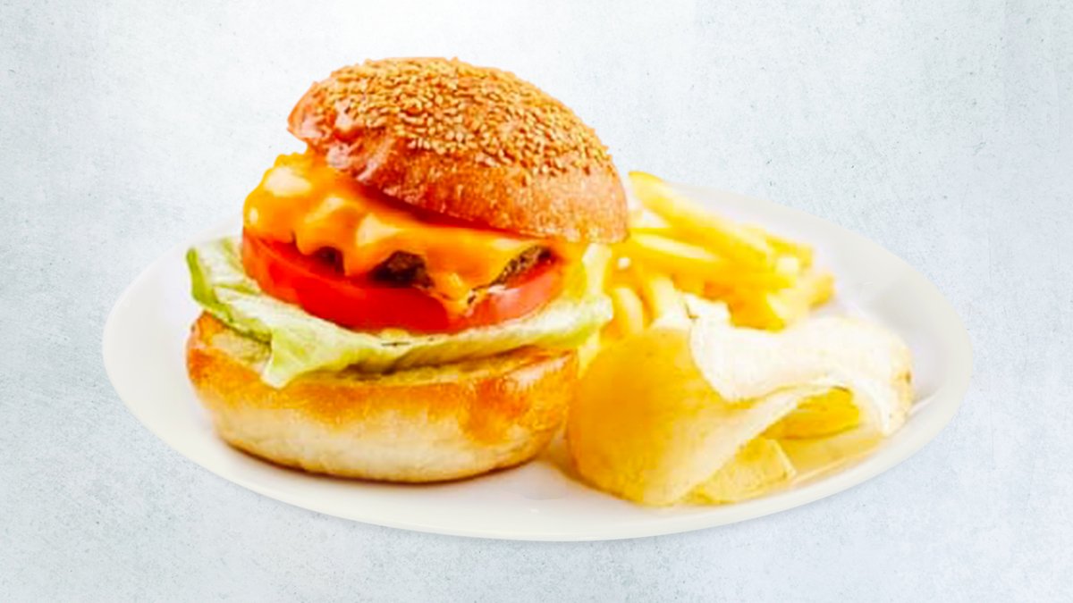 ジューシーなパティと新鮮な野菜を、こだわりのバンズで挟んだ、食べ応え満点の一品です。ポテト付き です。※画像はチーズをトッピングした画像になります。