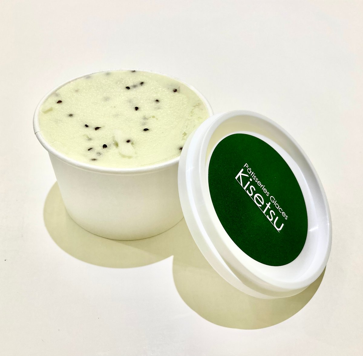 ゼスプリの完熟キウイを使用しています。爽やかな酸味のソルベ。グリーンやゴールドで色味は異なることがあります。