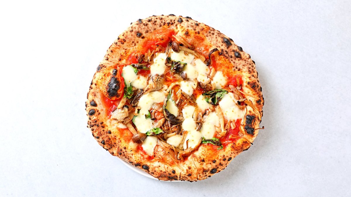 マルゲリータに香ばしくソテーした4種類のキノコをトッピングしました。旨味倍増です。