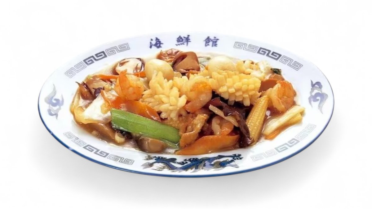 海鮮と野菜をとろみ餡でまとめた、具材豊富な贅沢料理です。
