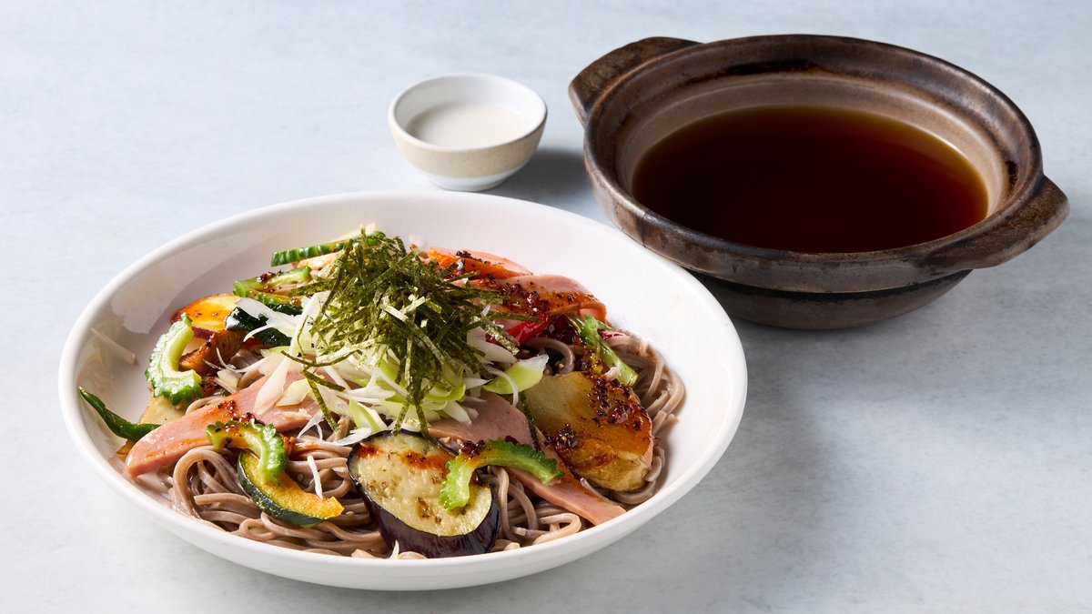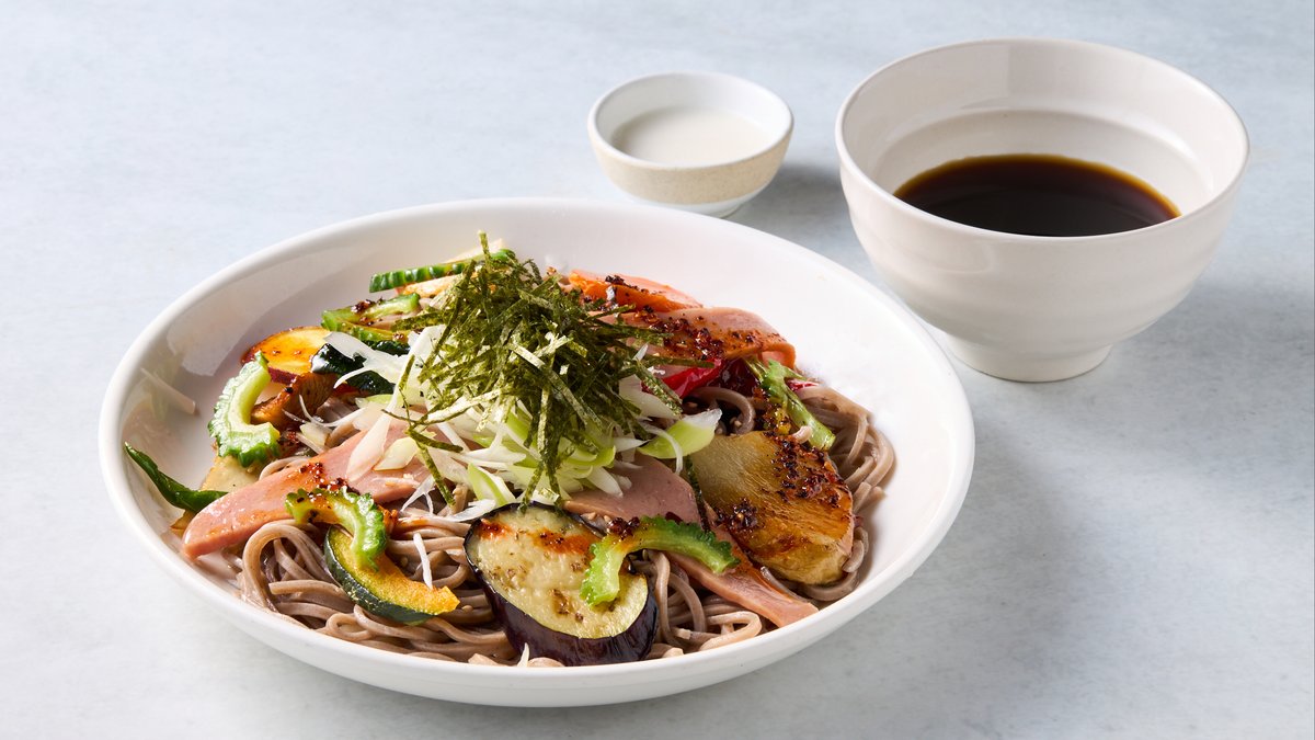 【冷】ゴーヤとポークの 辺銀ラー油蕎麦