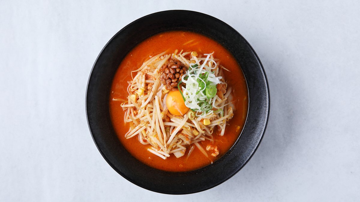 キムチ納豆ラーメンが看板商品です🍜小麦の自家栽培に取り組み加水率が約40%の多加水麺を使っています。中太でモチモチとした食感があり、のびにくいのも特徴です。キムチ納豆はもちろん多彩なメニューどれもによく合うとご好評いただいております。ぜひご賞味ください。