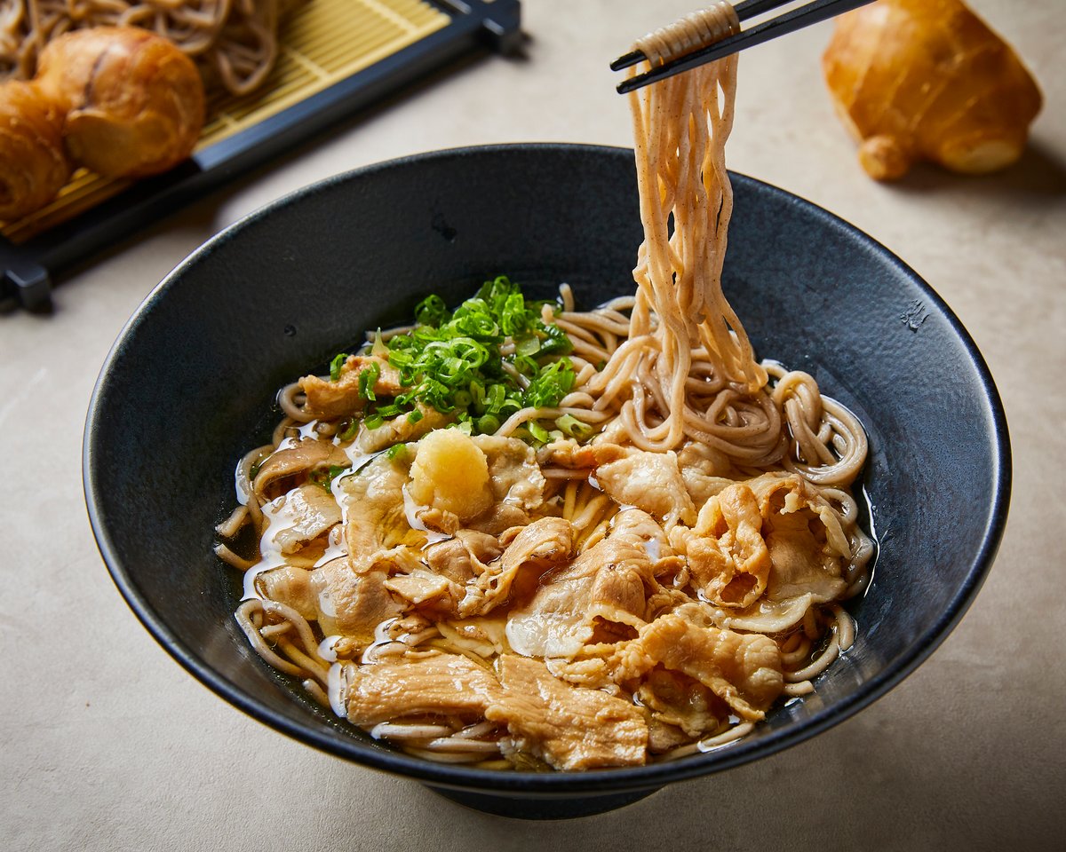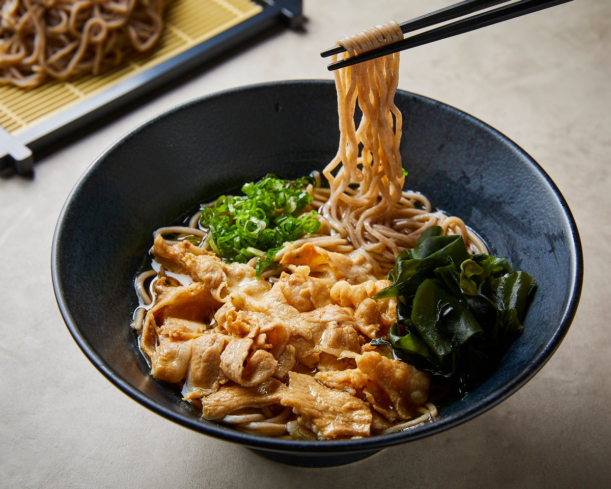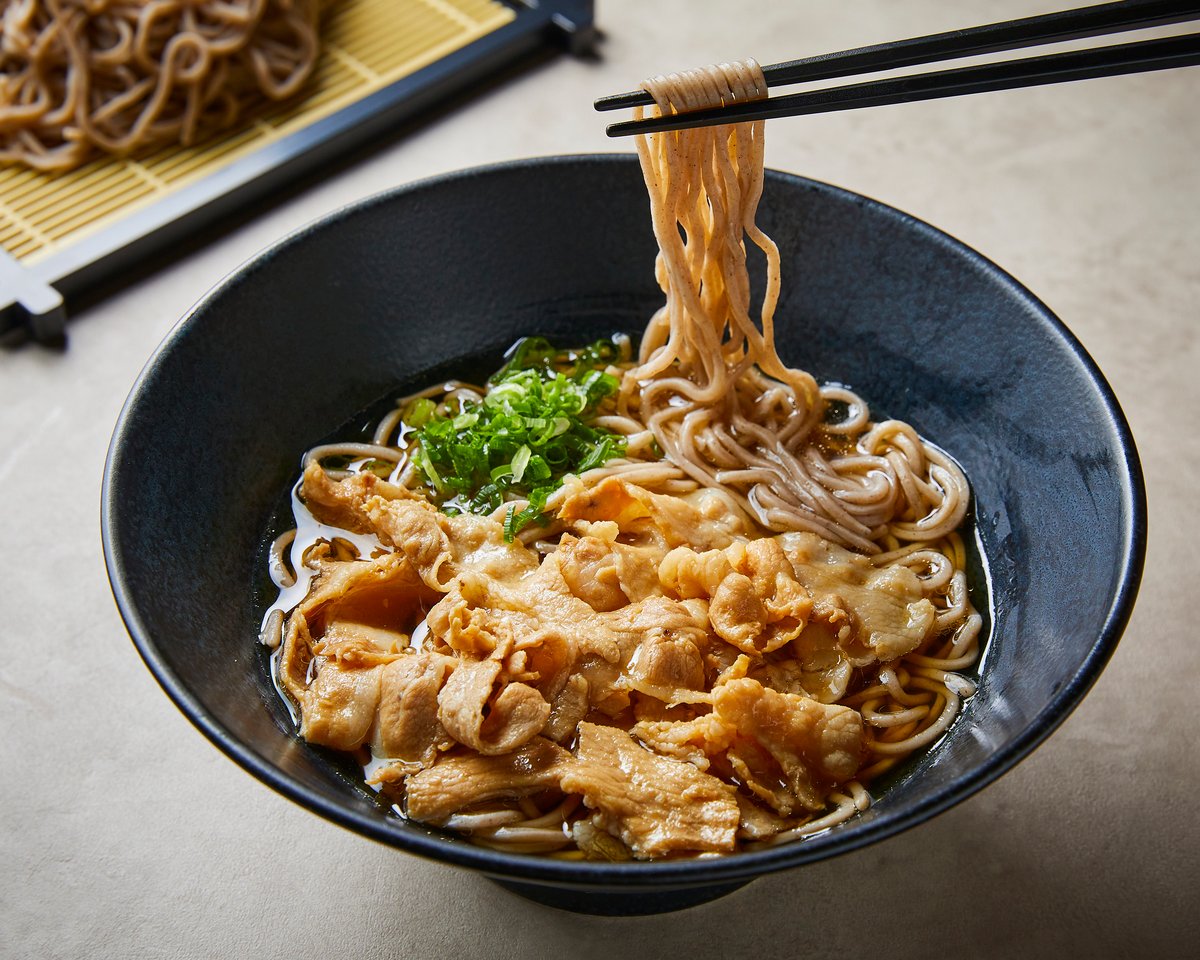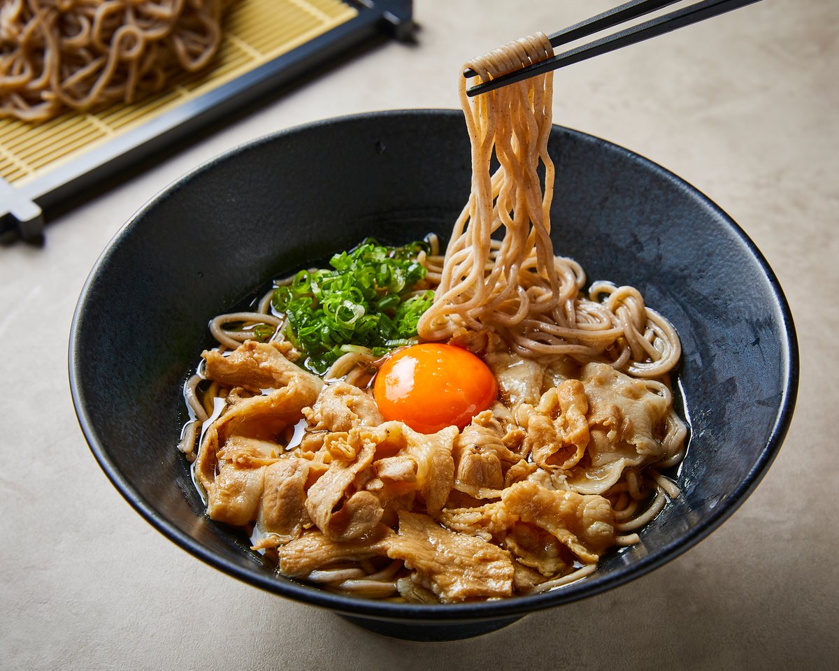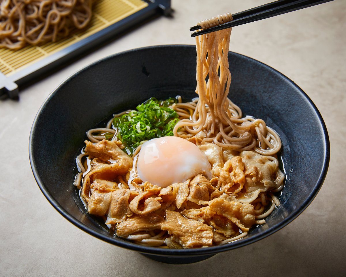 ミシュランシェフ監修の肉そばを提供しているデリバリー専門店です🥢ごま油とにんにくで味付けした豚バラ肉を和風だしの効いたそばとわせた自慢の逸品です!