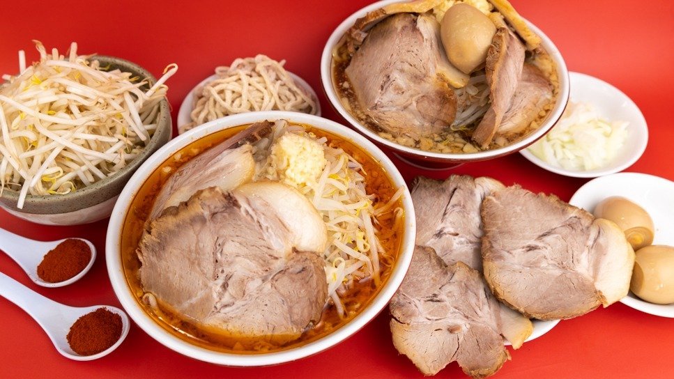 食べ応え抜群、分厚いチャーシューと山盛りの野菜、パンチの効いたスープが特徴です。ニンニクやアブラの量を調整してお好みにカスタマイズできる、ジャンクな一杯をご自宅で🍜